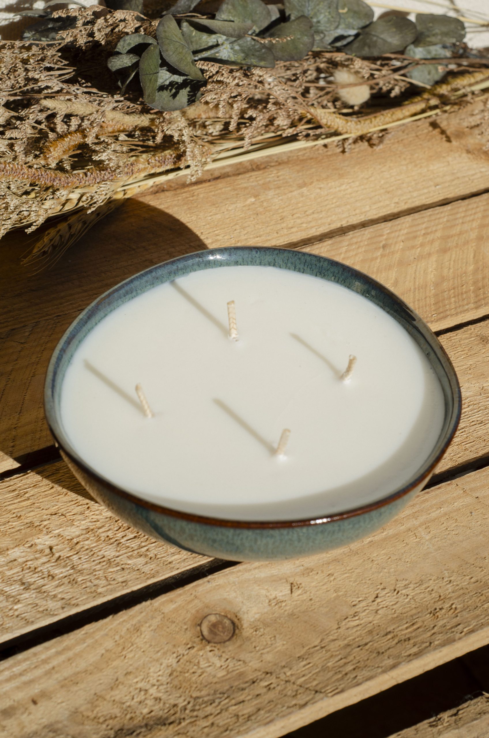 Nos bougies sont fabriquées à la main à partir de cire végétale de soja et de parfums de Grasse, pour une combustion propre et naturelle.